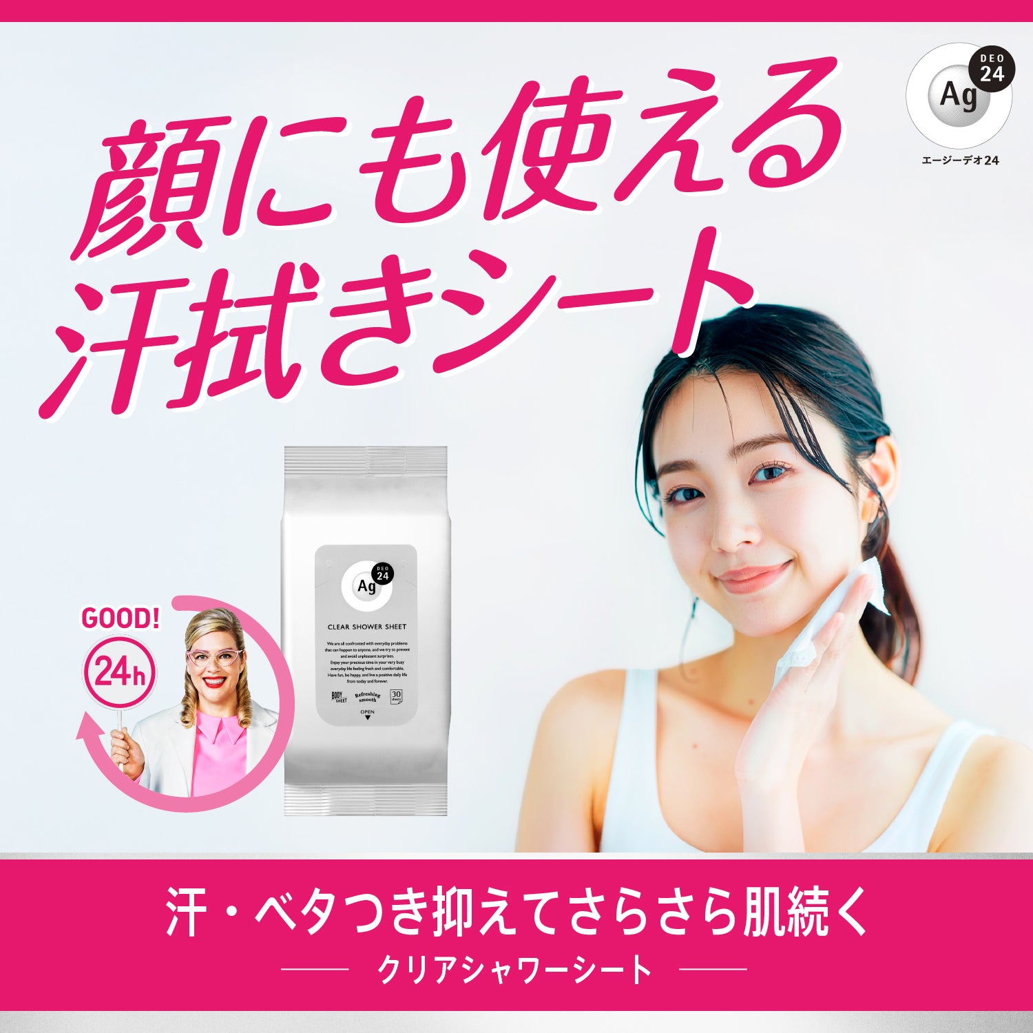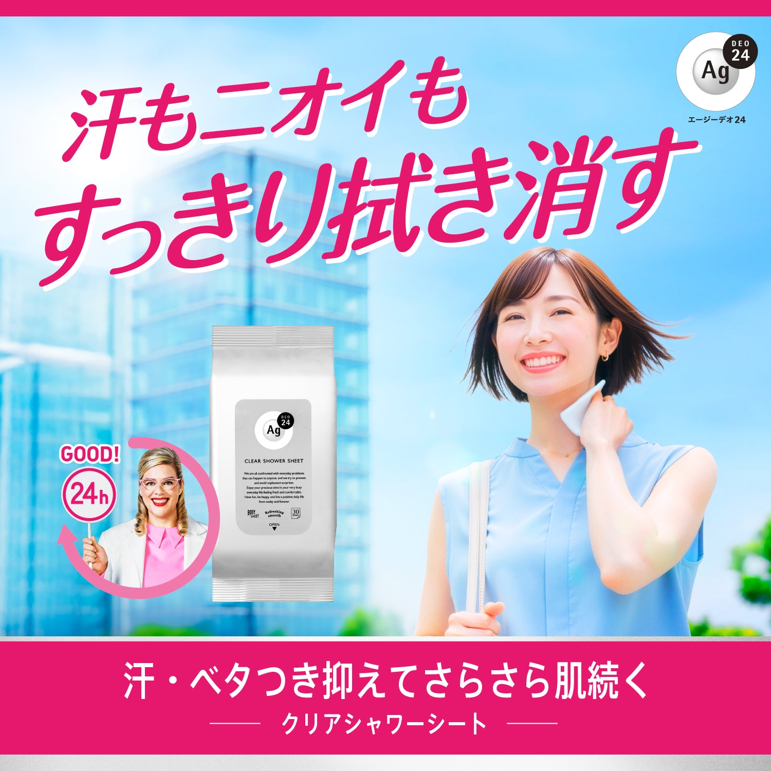 汗臭・ストレス臭・ベタつき・汚れ・ニオイ菌まで拭き消す!白くならずにさらさら肌続く。