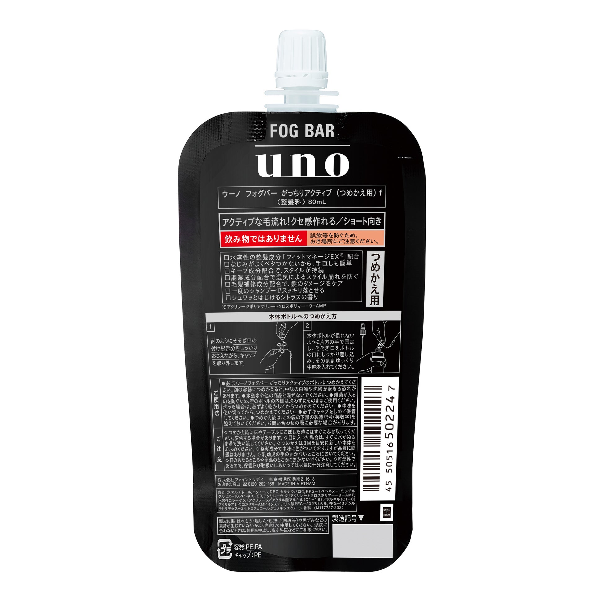 ◇必ず、ウーノ フォグバー がっちりアクティブのボトルに詰め替えてください。別の容器に詰め替えると、中味の白濁や沈殿が起きる恐れがあります。